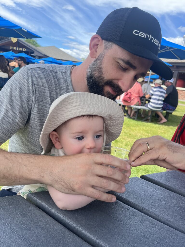 The property is stunning and very stroller-friendly with lots of open space: picnic tables in the grass, cabanas on the beach and a full cafe and restaurant. Depending on your vibe, you can grab an iced coffee and a treat and walk along the beach, grab a few family-style salads and pizzas to share or do a wine tasting.