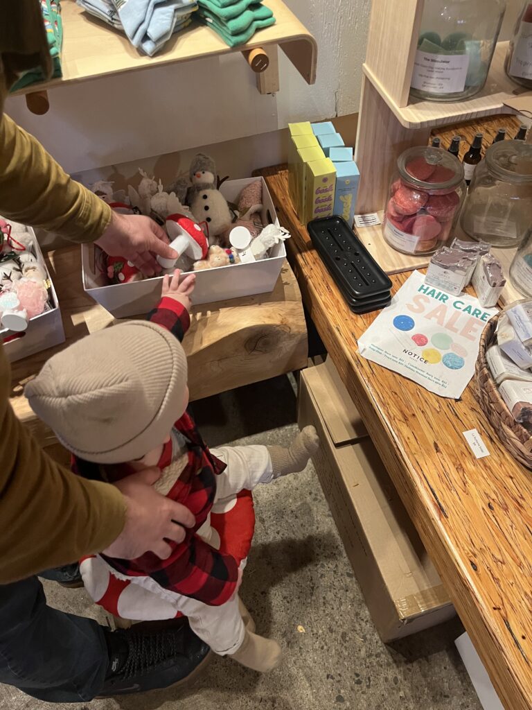 One of its most unique features is their consignment section, filled with secondhand baby clothes and kid items. They had used North Face, MEC, Patagonia, etc winter items in great condition at really good prices. United Strangers also boasts an impressive assortment of local, small business gifts — candles, treats, cards, pottery — making it a great spot to pick up a last minute white elephant present. As well as a fridge of local food & beverage goodies to take away. You can shop with them online too, here.
